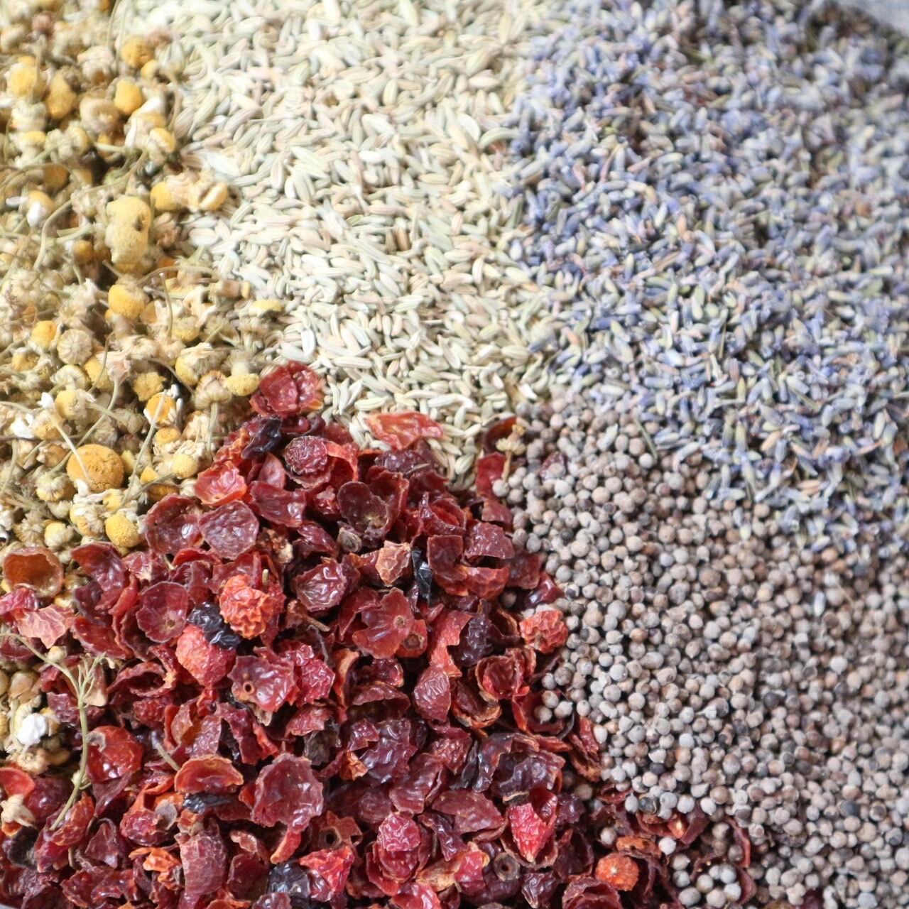 有機カモミール、有機ローズヒップ、有機フェンネル、有機チェストツリー、有機ラベンダー